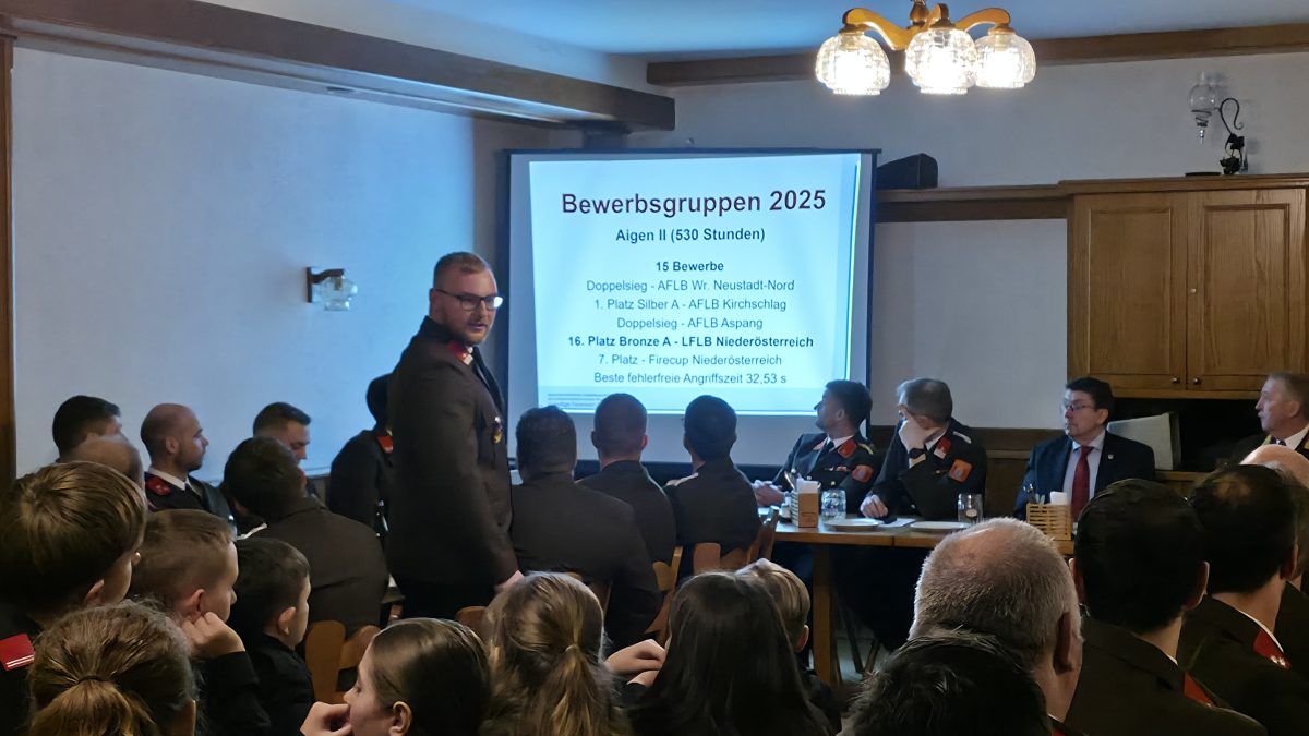 Am 3. Jänner 2026 fand die Mitglieder- und Wahlversammlung im Gasthaus Weingartleitenhof statt. Kommandant ABI Wolfgang Pürrer konnte dabei Bürgermeister Karl Kager, Vizebürgermeister Bernhard Pürrer, sowie 65 Mitglieder, davon 64 Wahlberechtigte und 10 Aigner Mitglieder der Feuerwehrjugend Kirchschlag begrüßen. Dabei informierte er alle Anwesenden über die Ereignisse des letzten Jahres, unterstützt durch die Berichte der Sachbearbeiter.
